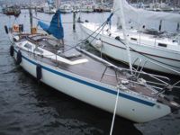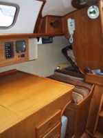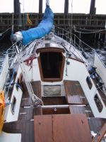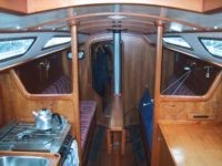 The cockpit has room for 4..5 people. Mainsheet traveler separates the helmsman's area. |