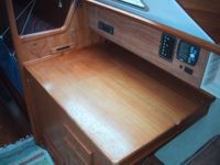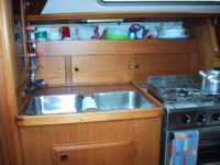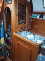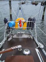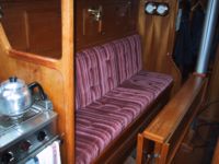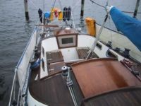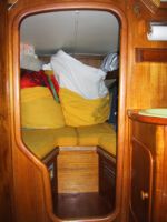 Forepeak is full 2 m. long. In front of it is a sail locker that supposedly has room for all these sail bags.. |